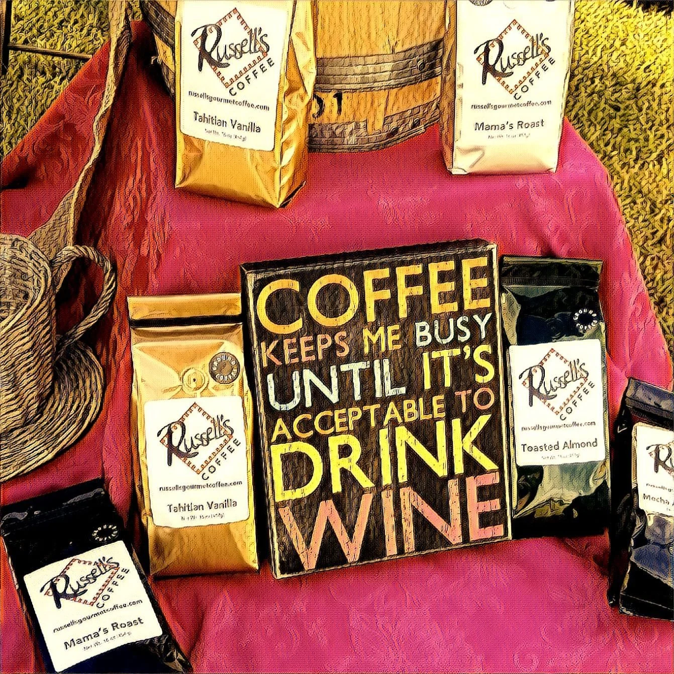 fresh roasted arabica coffee low acid coffee Shop Categories: All Clothing Apparel & Accessories Premium Blends Fall Favorites Collections Chocolate Dark Roast Dessert Fruit Flavors Hawaiian Jamaican Style Coffees Medium Roast Non-Flavored Coffee Nutty Flavors Rum Flavors Jamaica Blue Mountain Vanilla All | Clothing Apparel & Accessories | Premium Blends | Fall Favorites | Collections | Chocolate | Dark Roast | Dessert | Fruit Flavors | Hawaiian | Jamaican Style Coffees | Medium Roast | Non-Flavored Coffee | Nutty Flavors | Rum Flavors | Jamaica Blue Mountain | Vanilla | Jamaica Rum Flavor French Vanilla (non-alcoholic) from $19.00 Raspberry White Chocolate $19.00 BLACK. | EXPERIENCE THE COLLECTION $100.00 Russell's Smooth and Rich Coffee Collection from $45.97 Sale Cameroon Boyo Coffee from $25.00 BLACK. | Energize + Calm $25.00 BLACK. | Redefining Black -Signature Estate Blend $35.00 BLACK. | The Executive - Cameroon & Jamaica Blue Mountain $55.00 Beauti Cocoa $12.00 Russell's Single Cup 3 Pack Combo $45.00 Russell's Tipsy Beans Single Cups $15.00 Russell's Jamaican Rum French Vanilla Single Cups $15.00 Ice Coffee Only Local to Atlanta $6.00 Russell's Breakfast Blend Single Cups $15.00 Russell's Reusable Single Cup $10.00 Gift Card from $15.00 Mistletoe Mocha from $19.00 WinterWonderland from $19.00 Russell's Custom Blend $25.00 Vanilla Carmel Swirl $18.00 Hawaiian Kona Peaberry $92.00 Costa Rica Terrazu from $19.00 Tipsy Beans (Scotch Whiskey Flavor, non-alcoholic) from $19.00 Mama's Roast from $22.00 Blueberry Crumble from $19.00 Georgia Morning from $19.00 Mama's Roast DECAF-Swiss water Decaf $22.95 Tahitian Vanilla from $19.00 Bourbon Pecan Torte from $19.00 Jamaican Blue Mountain Coffee $90.00 Colombian Supremo Coffee from $20.00 Pumpkin Spice from $19.00 Banana Nut Rum from $19.00 Butterscotch Toffee Coffee from $19.00 Hawaiian Hazelnut from $19.00 Mocha Almond Fudge from $19.00 Jamaica Mi Crazy from $19.00 Maui Joe’s Original from $19.00 Espresso Beans from $19.00 Almond Cookie from $19.00 Toasted Almond from $19.00 Georgia Pecan from $19.00 Nutty Irish from $19.00 Nuttin but Kisses from $19.00 Mint Chocolate Chip from $19.00 Caramel Apple Pie from $19.00 Dulce De Leche from $19.00 Peppermint Candy Cane from $19.00 Chocolate Irish Cream from $19.00 Hawaiian Macadamia Nut from $19.00 Spiked Coconut Rum from $19.00 Cinnalicious from $19.00 Sugar Cookies from $19.00 Georgia Peach from $19.00 Cinnamon Mocha Twist from $19.00 Tanzania Peaberry Coffee from $19.00 Chocolate Hazel Nut from $19.00 Kenya AA Coffee from $18.00 Sumatra Mandheling Coffee from $17.00 Ethiopian Yirgacheffe Coffee $19.50 Cafe Cream from $19.00 Malawi Peaberry $21.00 Ethiopian Sidamo Organic from $20.00 Komodo Dragon $19.50 Papau New Guinea from $22.00 Russell's Coffee Hoodie from $49.00 Unisex Gray Hoodie $55.00 Russell Muscle Shirt $24.00 Framed poster from $40.50 Russell's Light Blue /White Hoodie from $49.00 Unisex organic sweatshirt $49.00 Crew neck sweatshirt $40.00 Russell's Wide-leg joggers from $45.99 White glossy mug $16.00